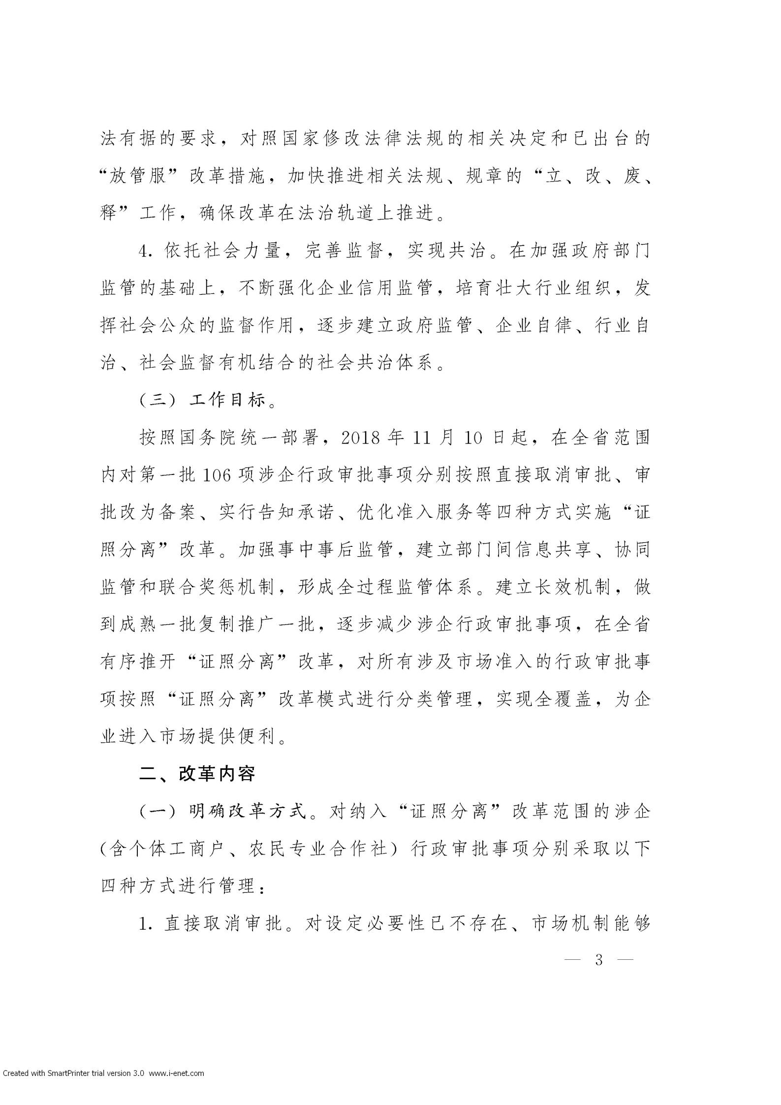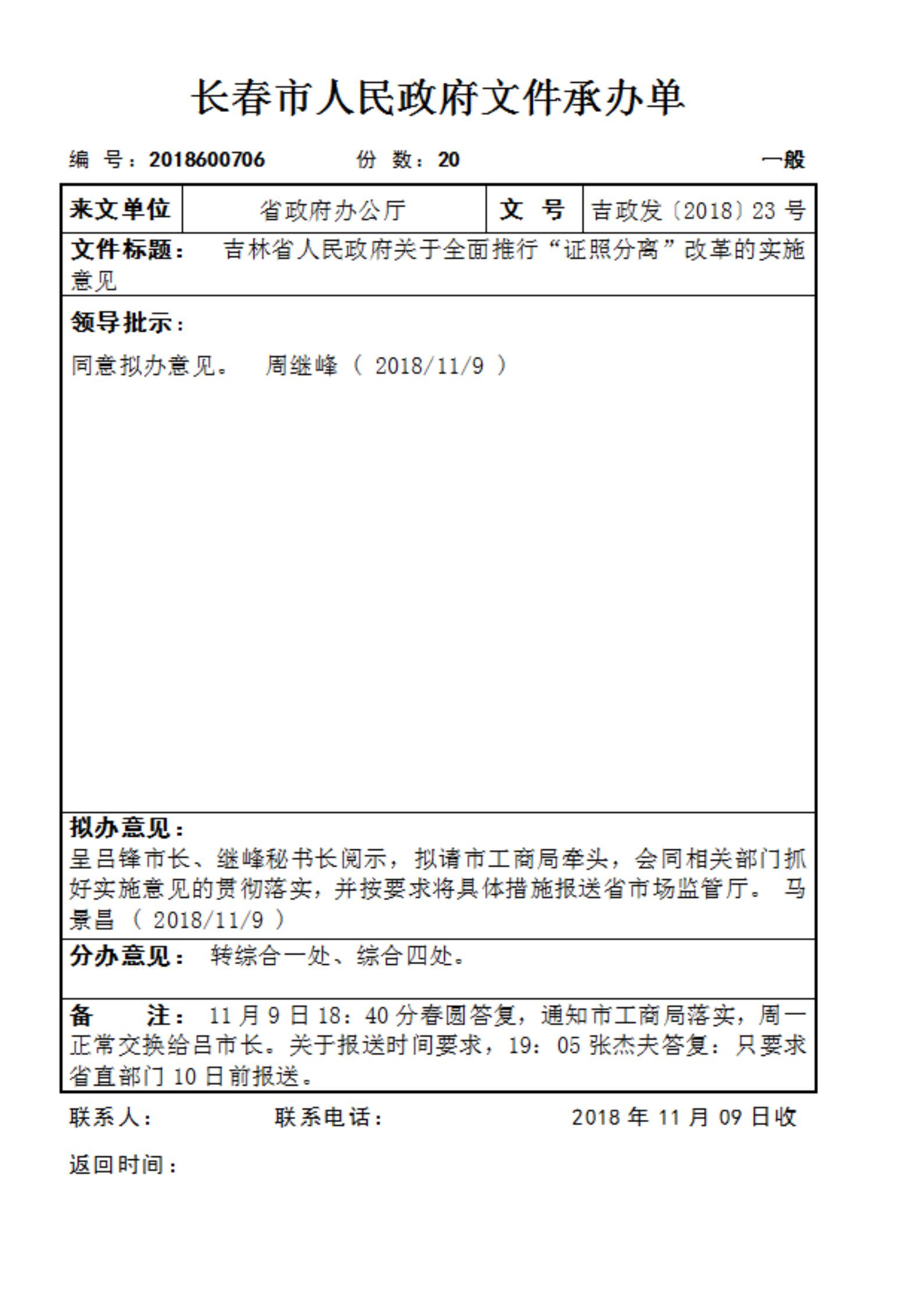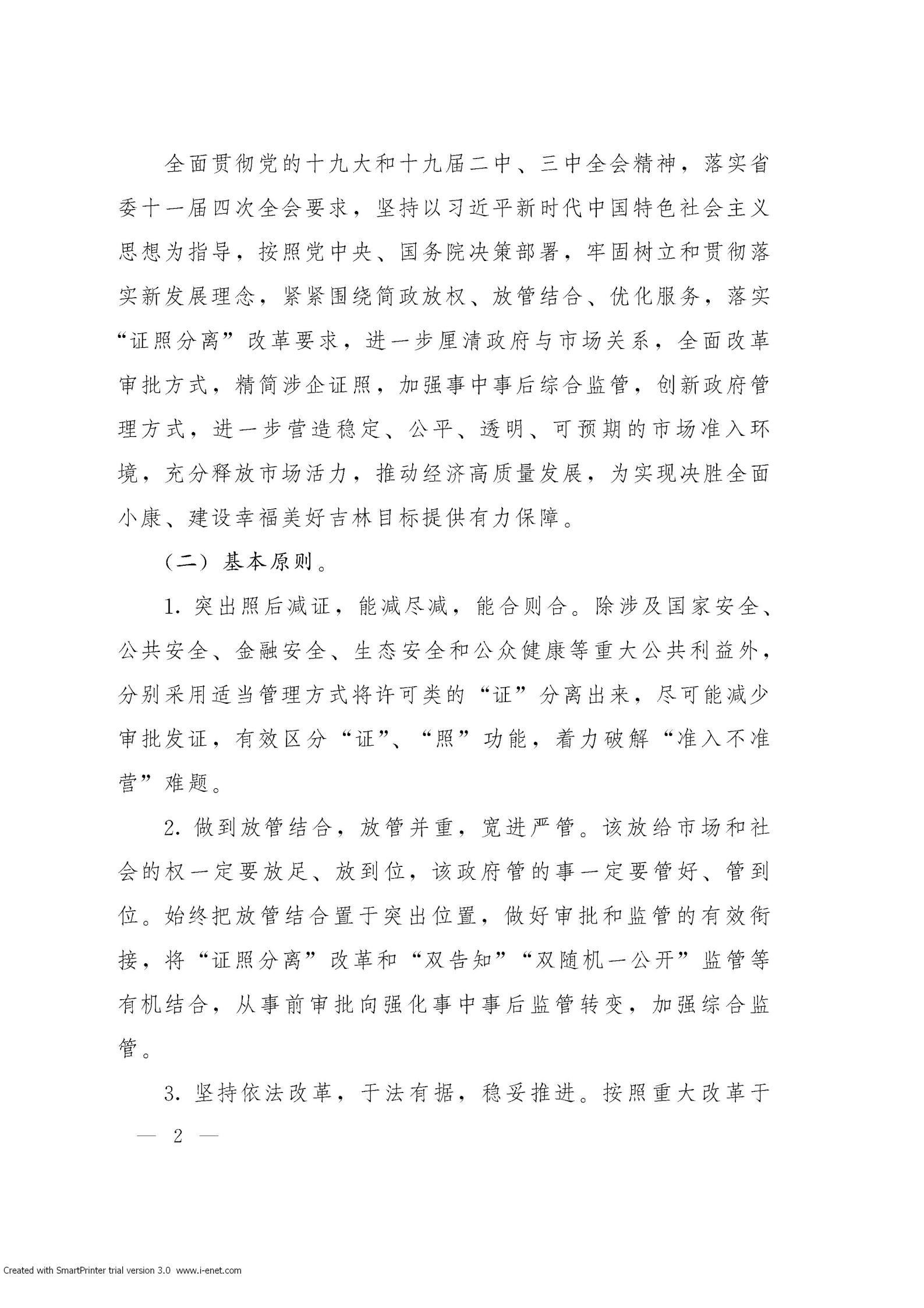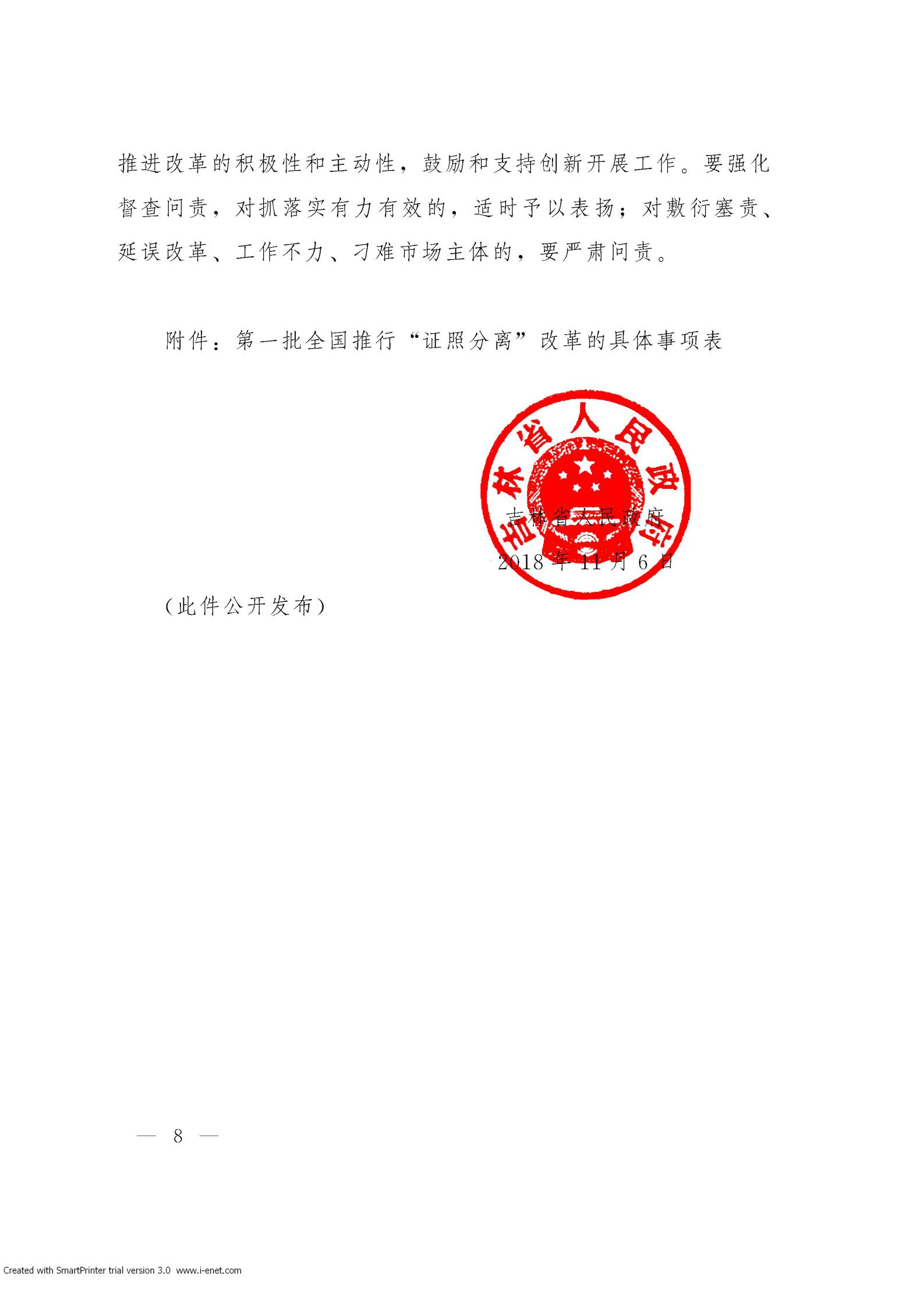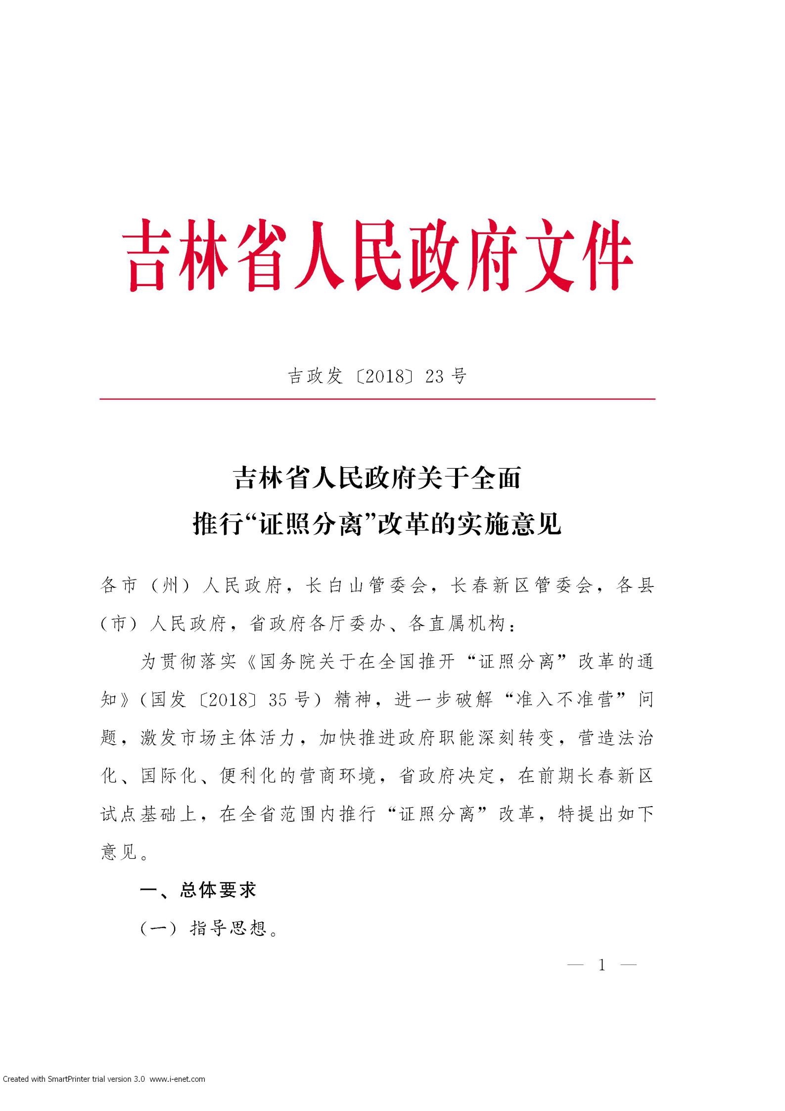 吉林省人民政府关于全面推行“证照分离”改革的实施意见