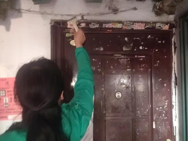 此次活动主要针对楼道、墙面、单元门上乱张贴的小广告进行清理。现场,党员们和“三长”们不怕脏不怕累,拿着小铲刀、喷壶等工具,对单元门、楼道内的墙体及楼道扶手上的小广告进行了彻底清理。