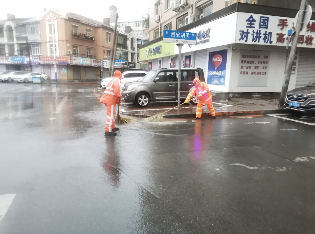 针对近期我市连续降雨天气,区执法局迅速部署,在确保一线环卫工人安全的前提下,对辖区内街路等进行雨中除尘作业,提升城区洁净水平。