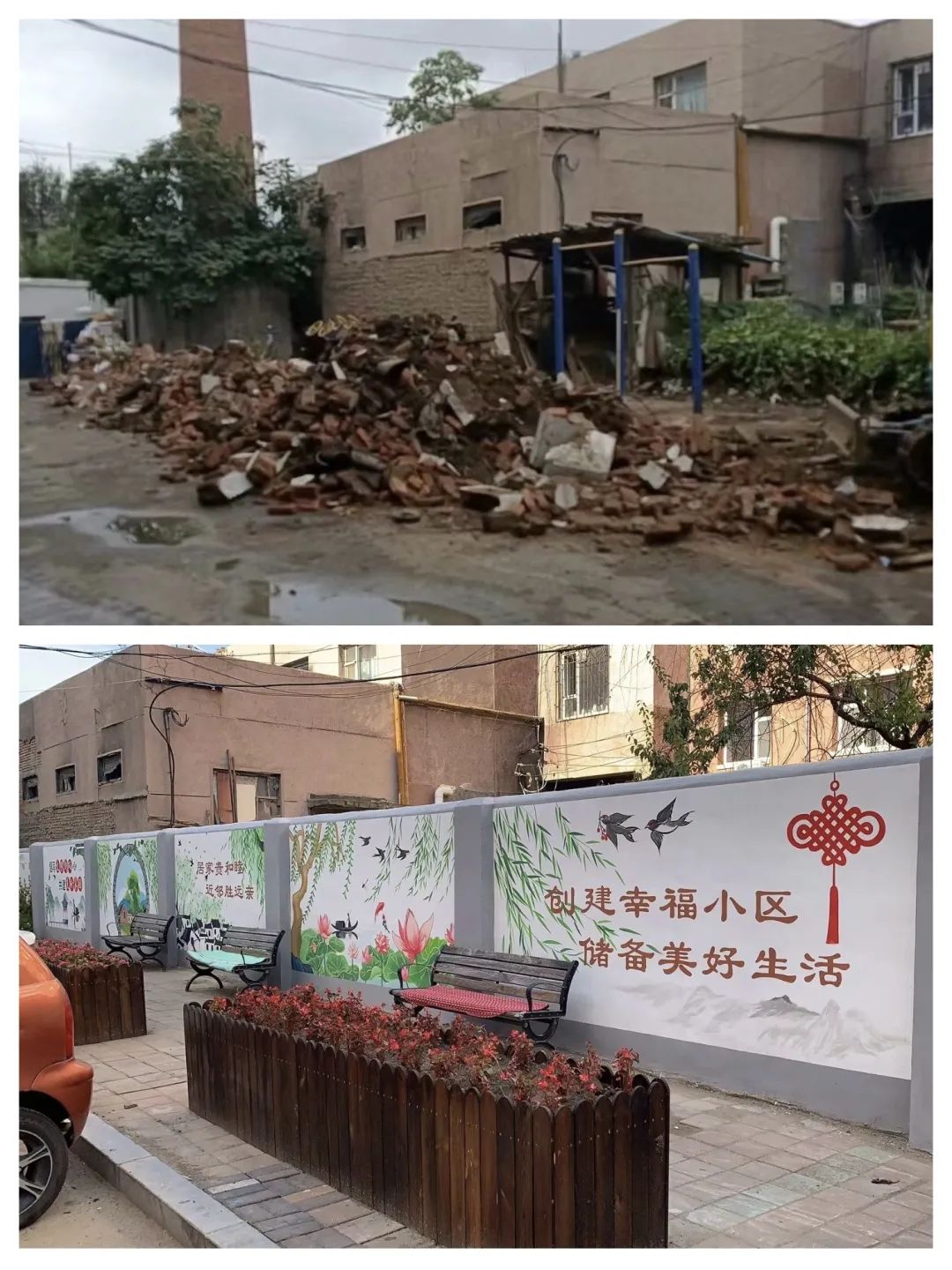 协调拆除围墙,守护居民安全。2019年末,小区院墙出现安全隐患。湖西街道城建科、宽平社区全面了解情况,在解决经费问题、制定方案后,多次与此处产权单位工作人员沟通协调,最后争得各单位同意拆除危墙,并且根据安全标准修建了新墙、绘制了彩绘,获得了居民一致好评。