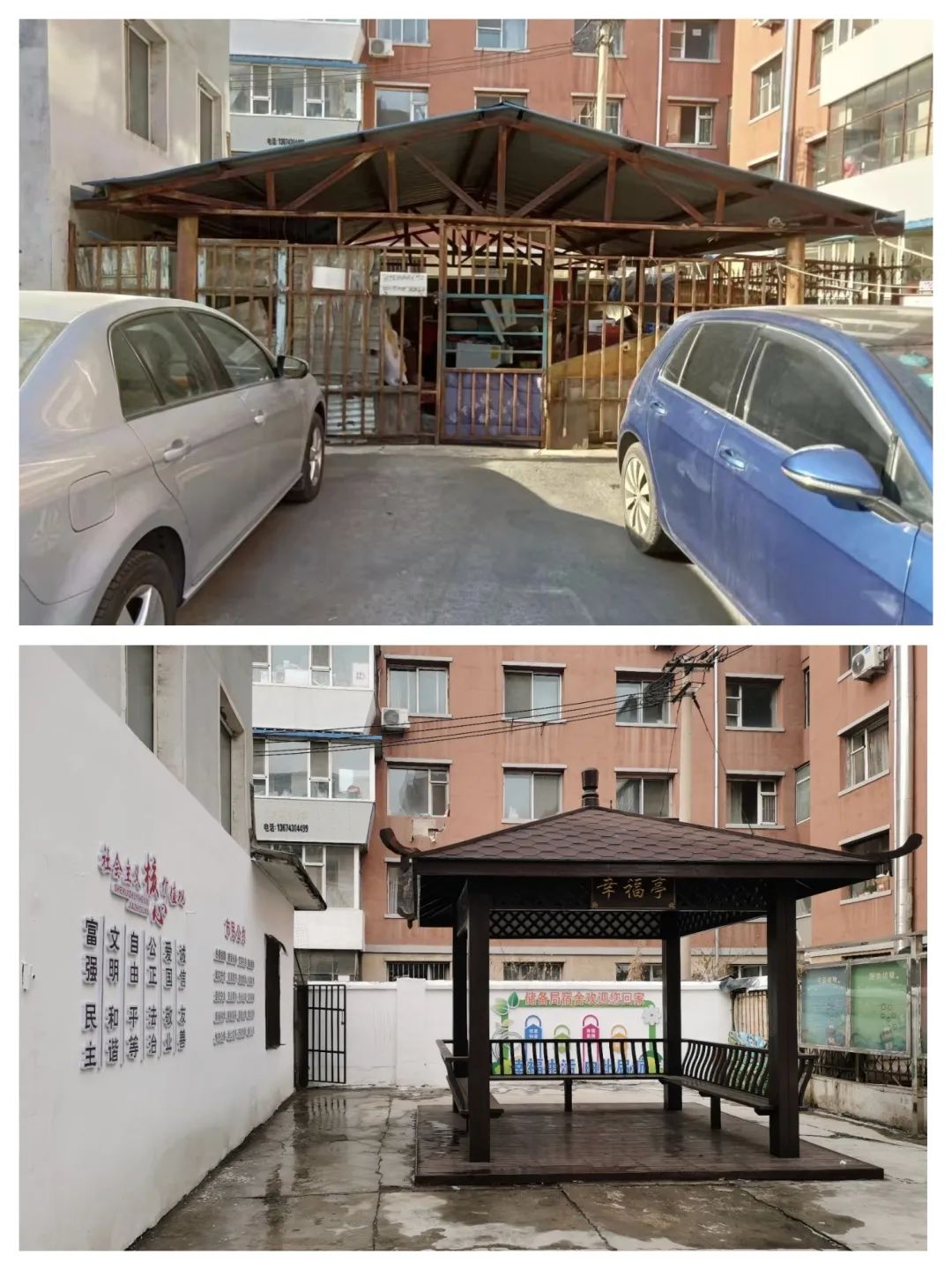盘活闲置资源,改善小区环境。在储备局宿舍小区中原本存在一处堆满了废弃电动车、自行车的停车棚,占地方、不安全、不美观的旧车棚已然成为小区居民的“心病”。宽平社区党委决定拆除车棚、清理废弃车辆,而后又在此处搭起了“幸福”凉亭,为居民议事、乘凉闲谈提供了场所。考虑到小区老年群体多,喜欢和邻里时常聚一聚、聊聊天的实际情况,宽平社区党委将小区锅炉房二楼的一个废弃仓库升级改造为党群服务联系点,让老人们在寒冷的冬天也有了畅谈娱乐的场所,密切了社区干部、小区党员、居民之间的关系。