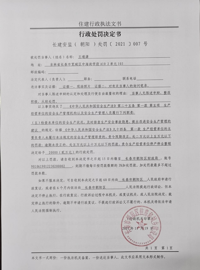 【行政处罚】关于王瑾潇违反了《中华人民共和国安全生产法》第二十五条规定的行政处罚